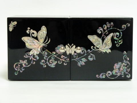 螺鈿双合宝石箱・漆蝶