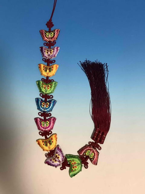 色違いの小さな蝶の刺繍が施されたおしゃれな商品です。
