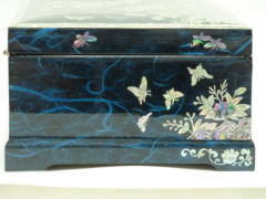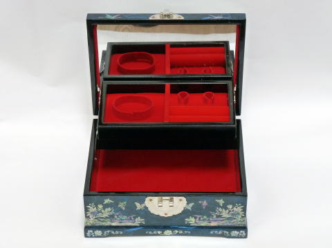 主色が紺色の高級螺鈿宝石箱です。