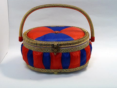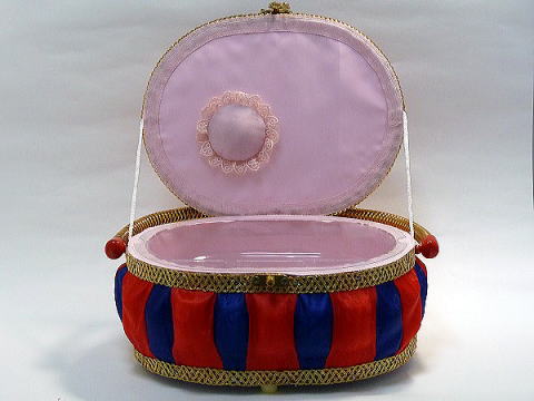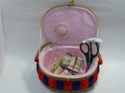裁縫箱・楕円形レッド×ブルー