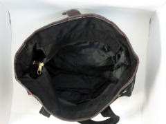 サイズは横 38p、縦 25.5cm(取っ手まで)、マチ幅 11p です。